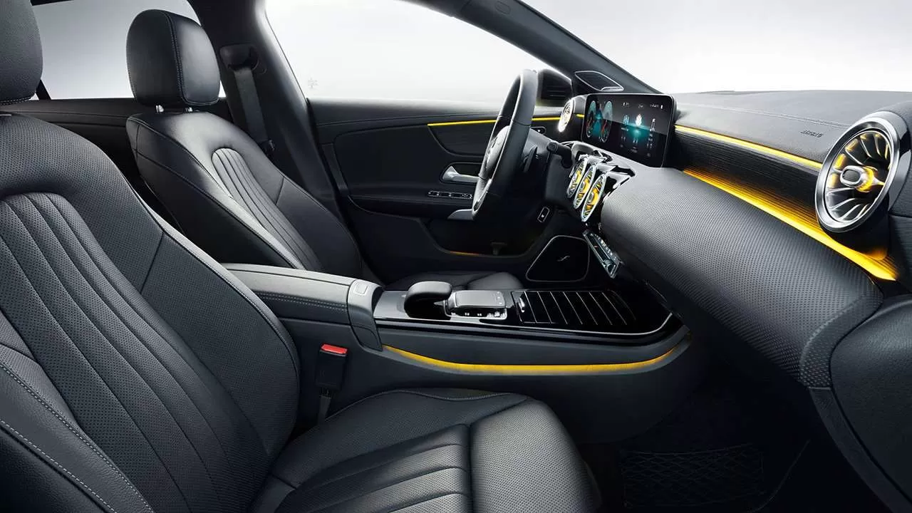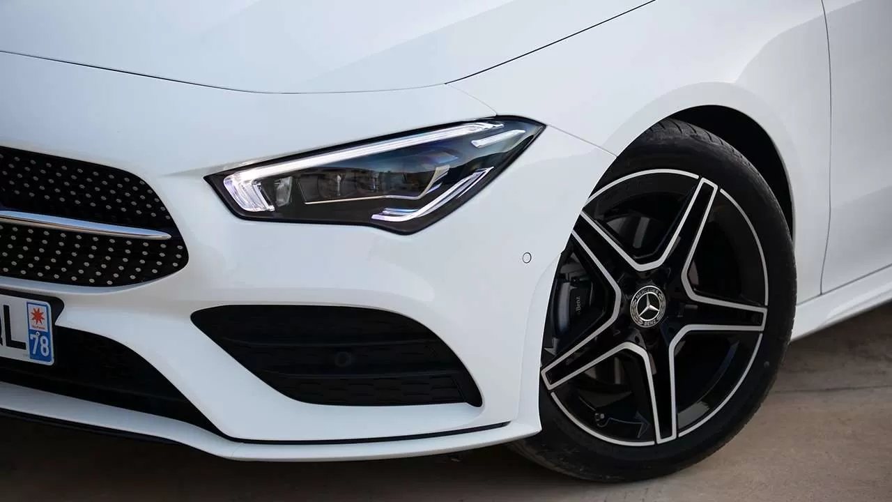 Прошлые спортивные повадки теперь сместились в сторону роскоши. Образ седана подтянулся к CLS, по сути это и есть маленький «банан». Спереди установлена собственная диодная оптика MULTIBEAM LED независимо от комплектации. Посередине расположилась фирменная радиаторная решетка с огромной 3-лучевой звездой. Оформление решетки зависит от комплектации.