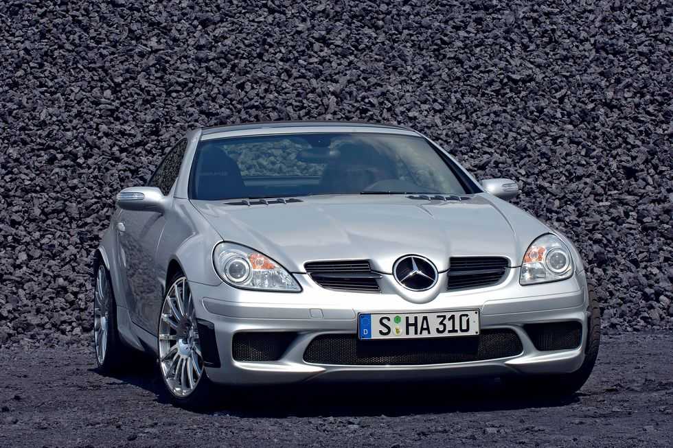 Unveiled in late 2006 and derived from the 35-unit SLK Tracksport, the SLK 55 Black Series was announced as «purist» and «ready for the track.» Changes to the regular SLK 55 were extensive: The naturally aspirated 5.5-liter V-8 breathed more freely and grew muscles, from 360 to 400 horsepower, yet it was still mated to a seven-speed automatic. A manually adjustable suspension, Pirelli performance tires, larger brakes and a strengthened chassis helped bring that power to the road. As did the ESP stability control system, which could not be turned off entirely. Wider fenders covered the 235/35R-19 front and 265/30R-19 rear tires.