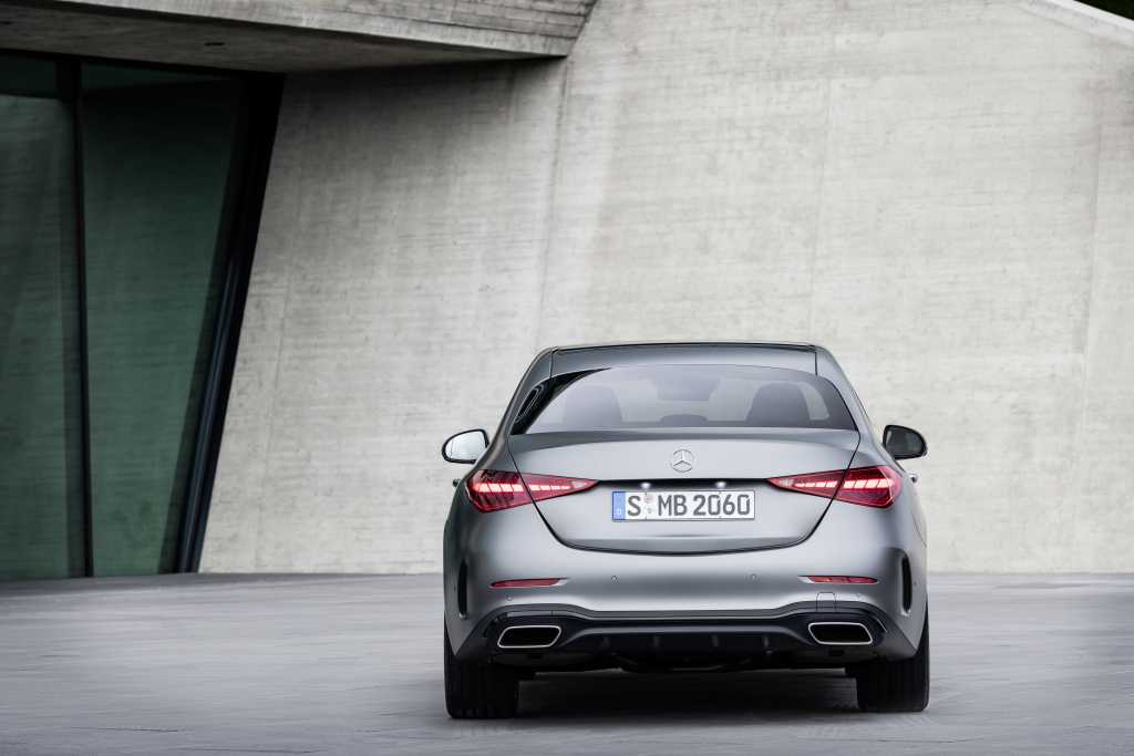 Несмотря на то, что данная версия создавалась практически с нуля, новый W206 сохранил характерные для традиционного C-Class черты. Передняя часть автомобиля получилась практически вертикальной. На ней преобладает массивная решетка радиатора в стиле Panamericana. Кстати, теперь все модели C-Class комплектуются таким элементом. Головная оптика, а также поясная линия автомобиля напоминают стиль нового S-Class. Кабина традиционно сдвинута чуть назад, а длинная передняя часть получила короткий свес. Эффектная корма приобрела достаточно маленькое заднее остекление. Фонари разделены багажной дверью на два сегмента, и они выполнены в каплевидной форме. В диффузор встроены оригинальные патрубки выхлопной системы, а по бокам заднего бампера разместились небольшие воздуховоды.