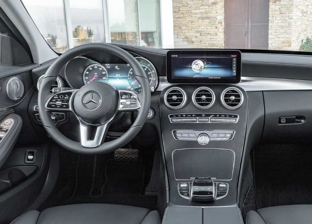Интерьер базового Mercedes C-Class изменили минимально – появился новый многофункциональный руль с сенсорными элементами управления. Отметим также использование в топовых комплектациях Ц-Класса 2018-2019 года цифрового приборного щитка диагональю 12,3 дюйма. Имеется и новейшая система мультимедиа, поддерживающая управление голосом, синхронизацию с мобильными устройствами и 12,25-дюймовый экран. Мультимедийный комплекс подключен к помощнику парковки. Доступна также возможность беспроводной зарядки мобильных устройств.