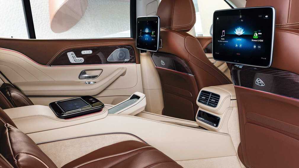 Самая шикарная вариация Maybach GLS 600 вмещает лишь четырех человек, однако также предлагается версия с 5-местным салоном. Автомобиль имеет все функции высшего класса – от складных столов и «флейт» с шампанским до особого аромата и мультимедийного комплекса на задних креслах.