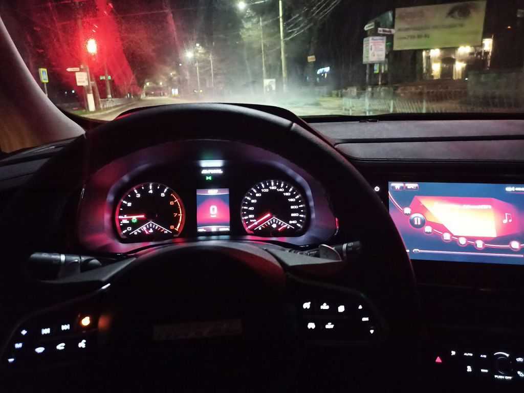 Атмосферная подсветка, которая может менять цвет, добавляет некий элемент премиальности, но все портит подсветка ног заднего дивана. Он тут статичный и светит красным цветом, что кажется не совсем серьезно. Когда вы сидите спереди, подсветка выглядит неплохо, но когда вы садитесь вечером в автомобиль, разнообразие цветов выглядит несерьезным.