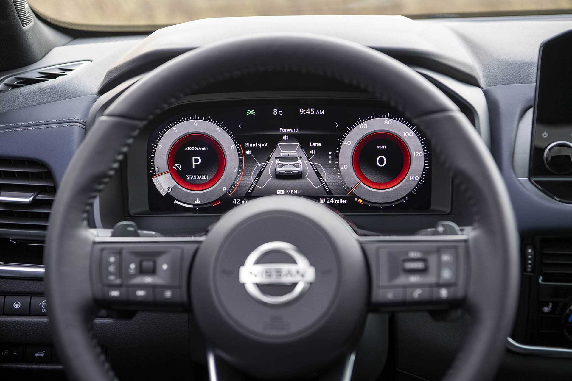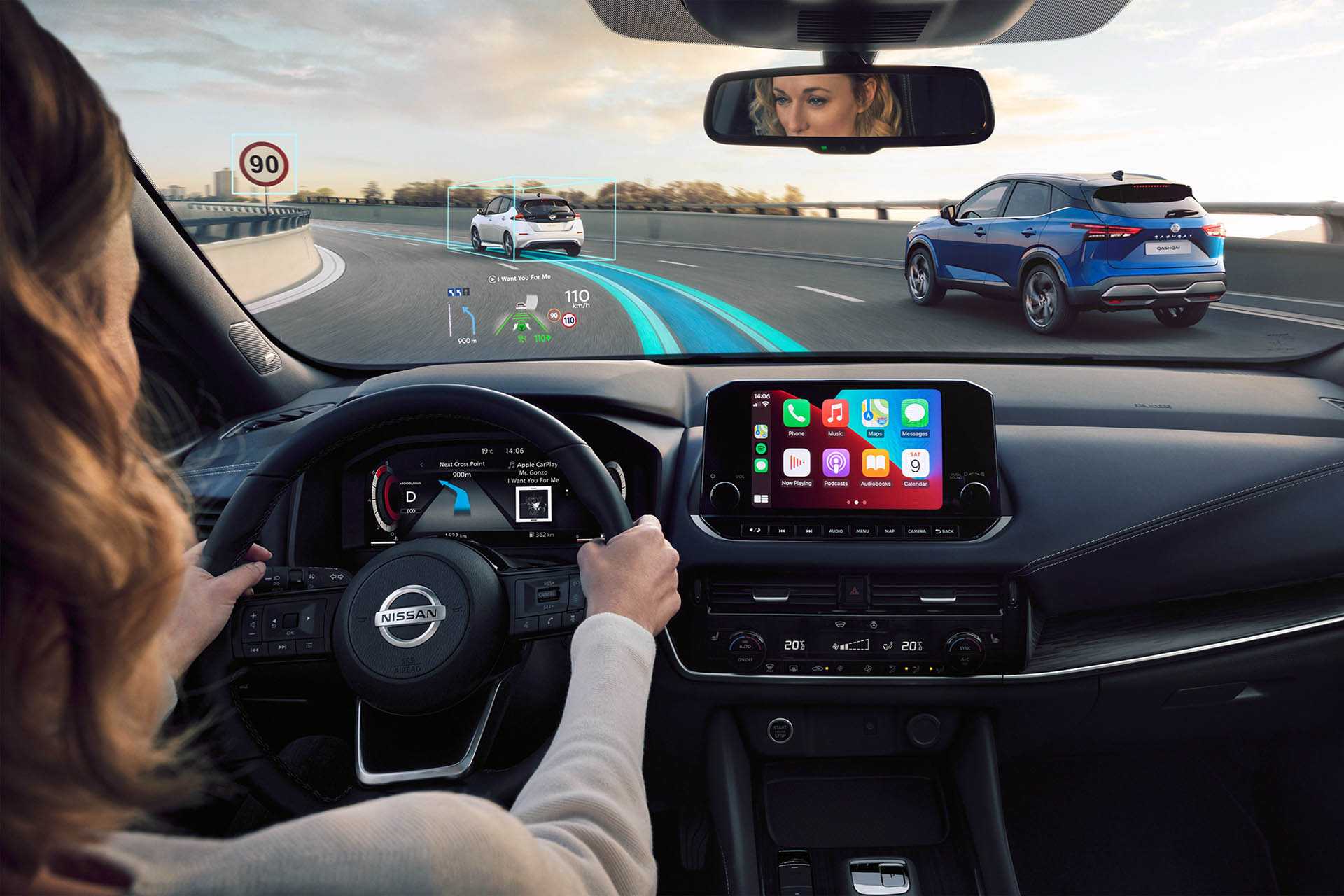 В оснащении нового Кашкая J12 есть система, которая умеет самостоятельно разгонять и тормозить кроссовер, сканируя радарами пространство впереди и используя данные навигатора. Топовая версия имеет встроенный в лобовое стекло проекционный экран, на который выводится дорожная информация и подсказки навигационной системы.