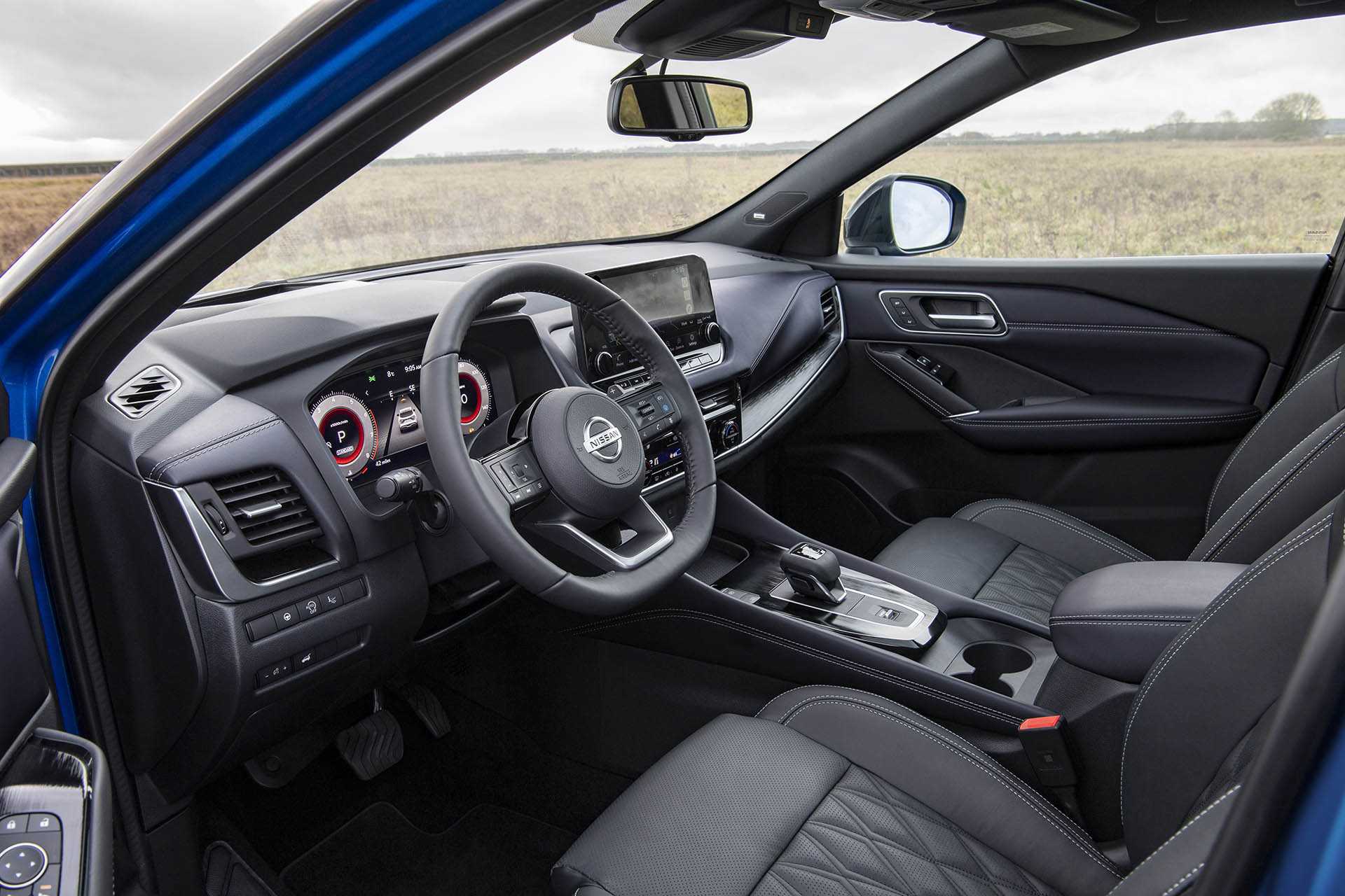 В дорогих комплектациях Кашкай устанавливаются сидения, обшитые кожей Nappa на манер «французской елки». Рулевое колесо усечено в нижней части. Производитель иначе разместил на нем кнопки. В кроссовере предыдущей модификации элементы управления были выстроены вертикально. Сейчас кнопки размещены горизонтально, а некоторые из них, отвечающие за переключение дисплея на приборной панели и круиз-контроль имеют форму джойстика.