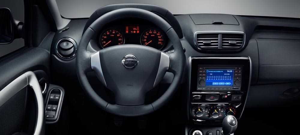 По отзывам владельцев Ниссан Террано 2022 года, его салон просторный, свободный, с большим количеством декоративных накладок из алюминия. В отделке принимали участие дорогие материалы и пластик высокого качества. Рулевое колесо хоть и не многофункциональное, все же отличается удобным хватом.