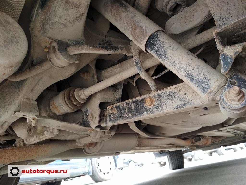 Что дело до коррозии, то былой известной беды, как со старыми Ниссанами, тут не произойдет, но «рыжики», как ни странно, все же появится могут. В основном ржа активно покрывает всю магистраль выхлопной трубы и понемногу проклёвывается через сколы на передних кузовных стойках и крышке багажника. В других местах ничего подобного пока не зарегистрировано.