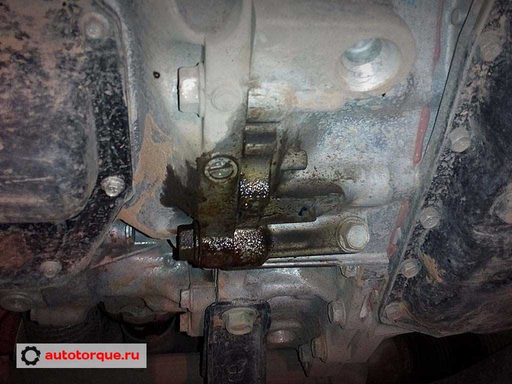 Течь сальника КПП проще всего заметить снизу, сняв защиту