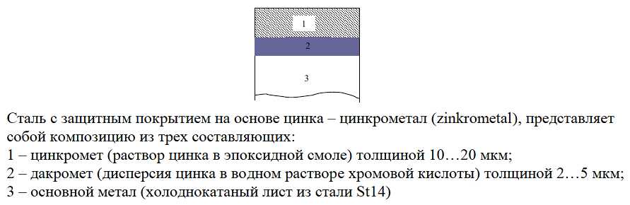 Цинкрометалл — Приемлимый тип. Металл с эластичным покрытием на цинковой основе, слабые антикоррозионные свойства, устойчивость к механическим воздействиям. •
