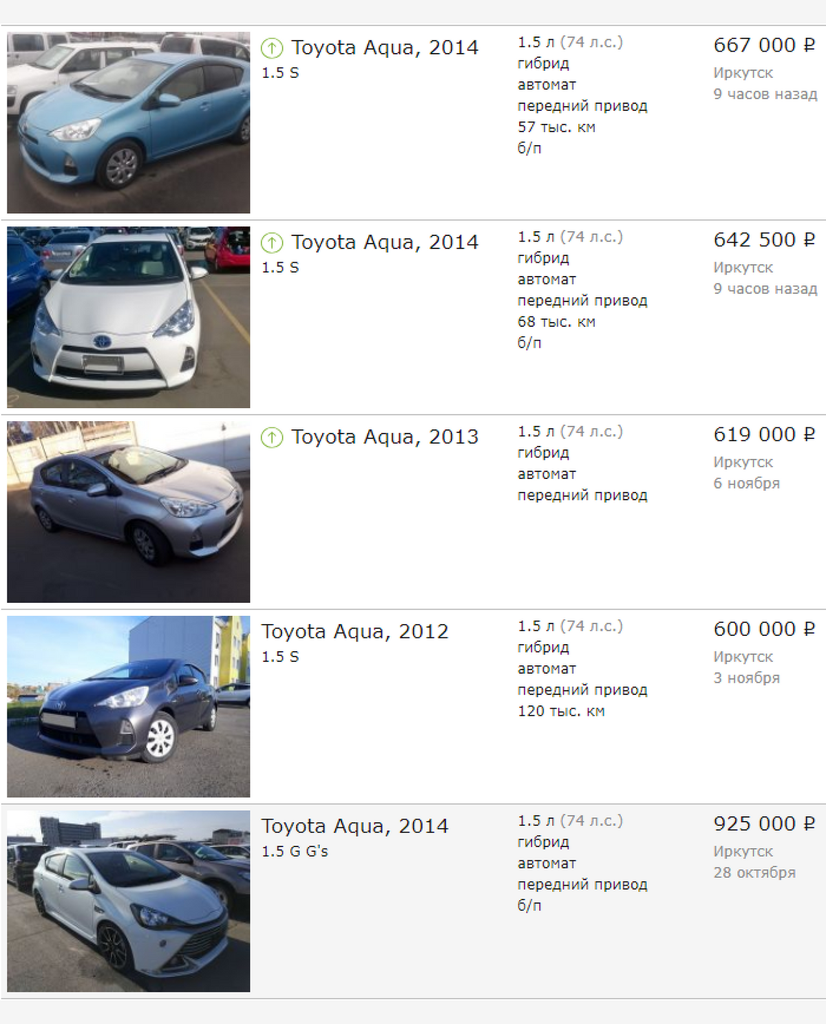 Осенью 2018 года Аквы 2013—2014 годов без пробега по РФ у перекупщиков стоили столько же — около 650 тысяч рублей