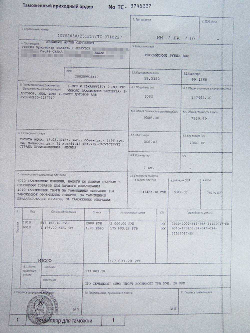 184 000 Р: таможенные пошлины и сборы, утилизационный сбор