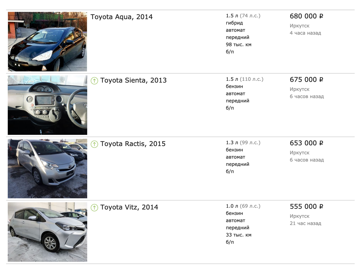 На сайтах вроде «Дрома» или «Авито» можно найти немало японских машин с пометкой «Без пробега по РФ». Такие машины продают перекупы — компании или частники, которые профессионально занимаются перепродажей японских автомобилей.