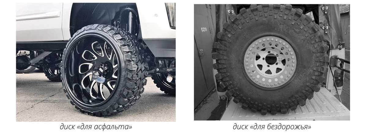 Низкопрофильная резина хуже «плющится» и больше риск пробития до диска на неровностях. Соответственно, с небольшим диском и высокой резиной вы получите большее пятно контакта при снижении давления, что актуально для внедорожной жизни, и меньший риск повредить диск.