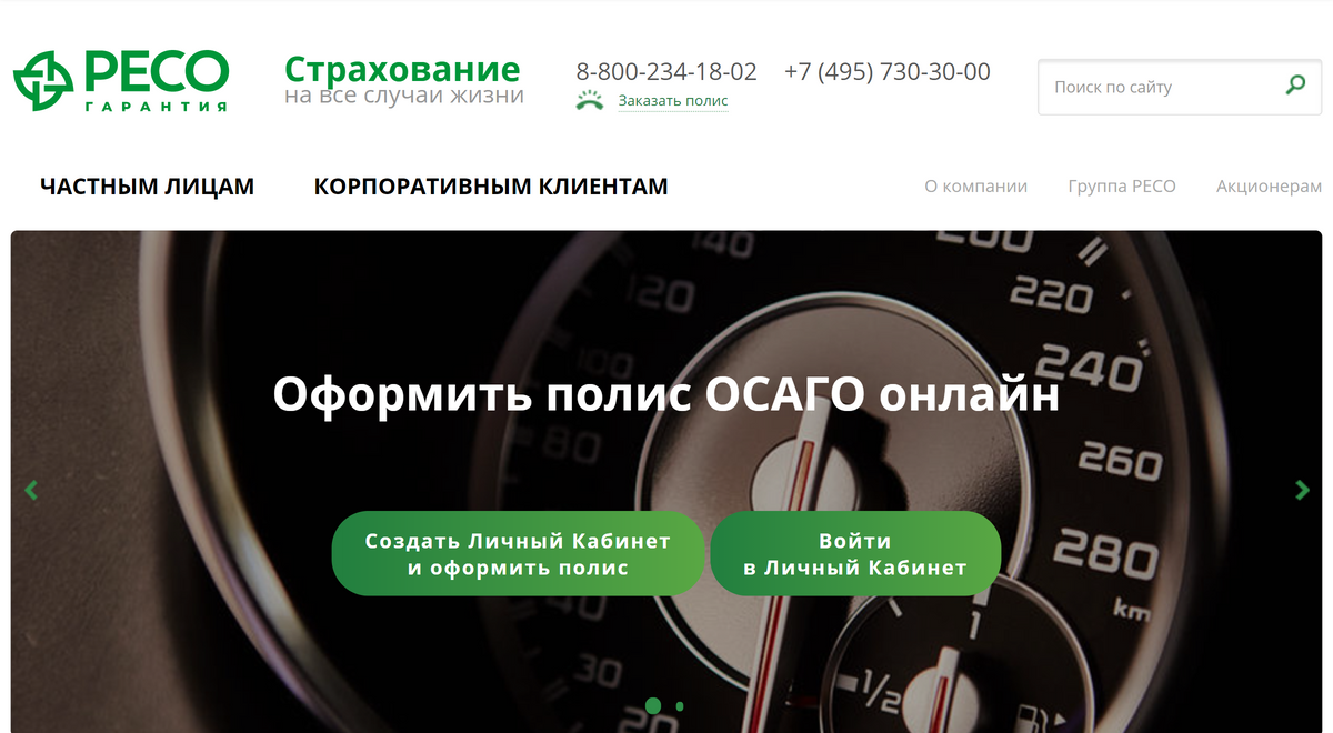 На сайте страховой компании у клиента есть выбор: оформить электронный полис ОСАГО, найти ближайший офис или агента
