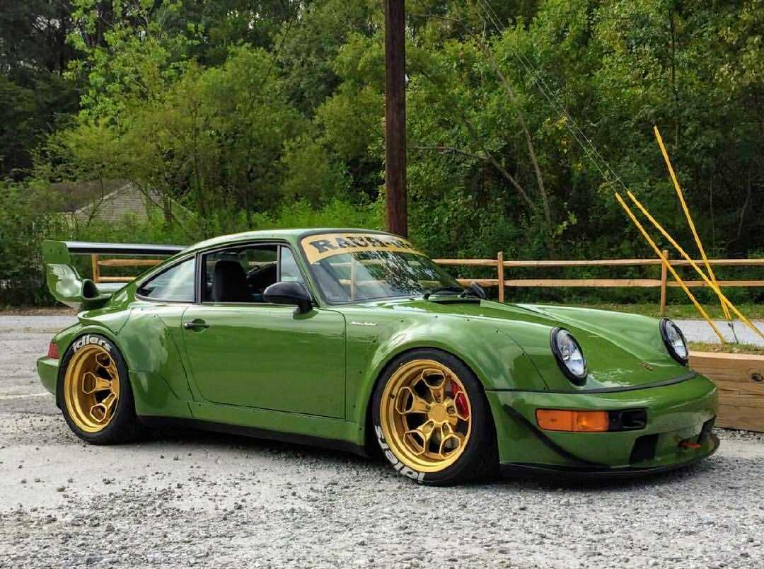 По словам продавца, этот Porsche 964 Carrera 4 1990 года был первым 911-м, прошедшим процедуру RWB в США. Окрашенный в зеленый цвет Mignonette Green, он отличается комично крупными крыльями, синонимичными имени Rauh-Welt. Кроме того, он оснащен спойлером из сладкого утиного хвоста и каркасом безопасности, подобранным по цвету.