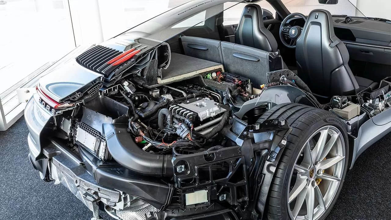 Пока машина передвигается за счет одного мотора в линейке – оппозитный алюминиевый 3-литровый двигатель на двух турбинах. Двигатель Porsche 911 2022-2023 оснащен системой изменения фаз газораспределения и непосредственным впрыском топлива, выдавая 450 лошадиных сил при 6500 об/мин и 530 H*m момента на 2300 об/мин. Мощность увеличилась за счет изменения системы впуска и выпуска.