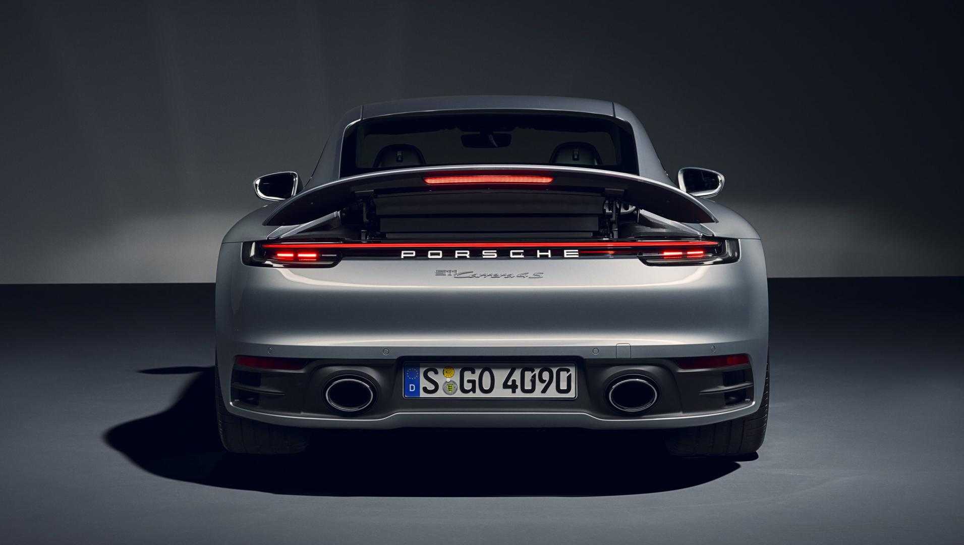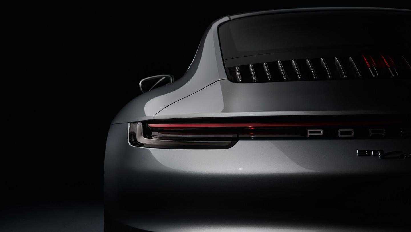 Дверные ручки теперь утоплены и оснащены электроприводом. А сильнее всего Porsche 911 изменился сзади — узкие фонари объединены светодиодной полосой, а темная секция в бампере визуально расширяет «корму». Подъемное антикрыло увеличено в размерах.