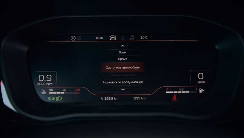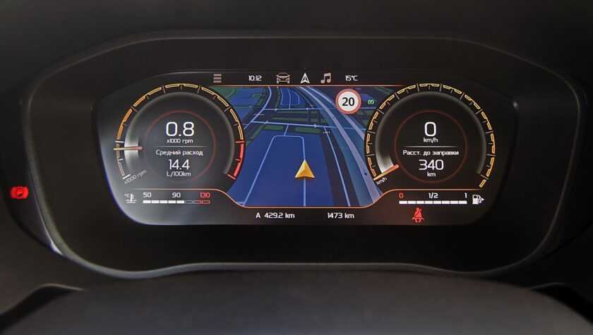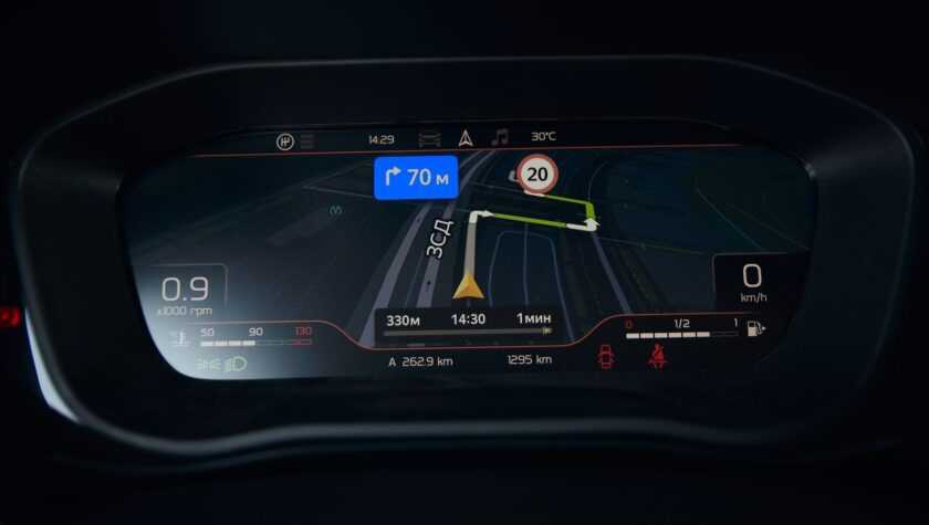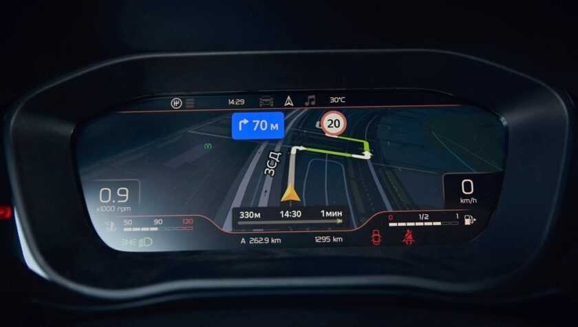 Комбинация приборов находится внутри рулевого колеса. Там же находится и подушка безопасности, которая при срабатывании разрывает щиток по специальным линиям разрыва (это решение рулевой колонки защищено патентом на изобретение).