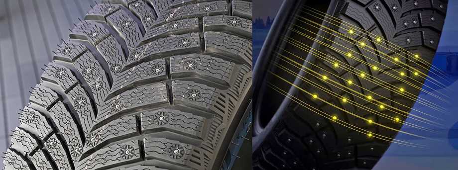 При этом каждый шип обладает «раллийным» выступом, дабы оптимизировать сцепление. Шипы очень долговечны, так как устойчивы к физическим и химическим факторам. А продуманная комбинация их размещения существенно снизила шумность.