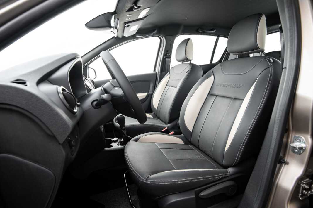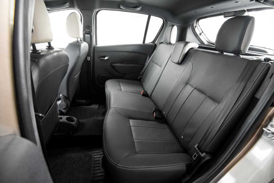 Рено Сандеро Степвей 2023 2024 года в новом кузове имеет удобные сиденья с прочной боковой поддержкой. Она не пропадает после гарантийного срока, который составляет 3 года. Для удобства блок управления отоплением и кондиционером был перенесён повыше. Второй ряд кресел по-прежнему с удобством разместит трёх пассажиров.