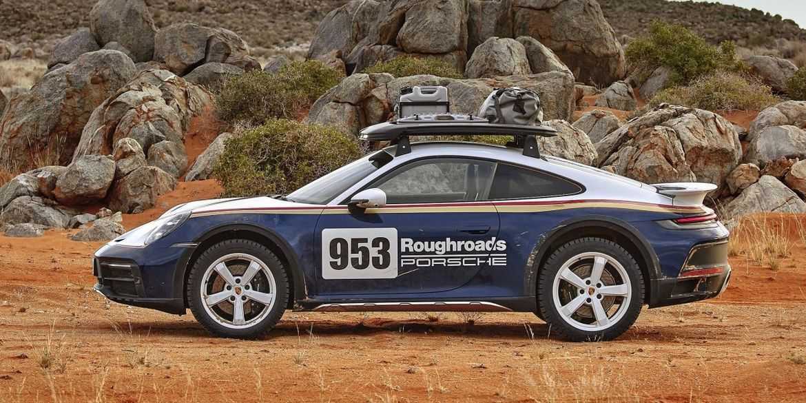 Особняком в списке допоснащения стоит стайлинг-пакет Rallye Design Package с ливреей, повторяющей раскраску Porsche 953. Вот только спонсором той дакаровской команды была британская табачная компания Rothmans: ее крупный логотип располагался прямо на дверях, рядом с номером экипажа. Разумеется, обклеенная спонсорскими лого дорожная машина не прошла бы сертификацию, поэтому в Porsche заменили надпись Rothmans на Roughroads («плохие дороги»), а номер можно выбрать любой. Хотя что-то нам подсказывает, что самыми популярными сочетаниями станут «176» и «953».