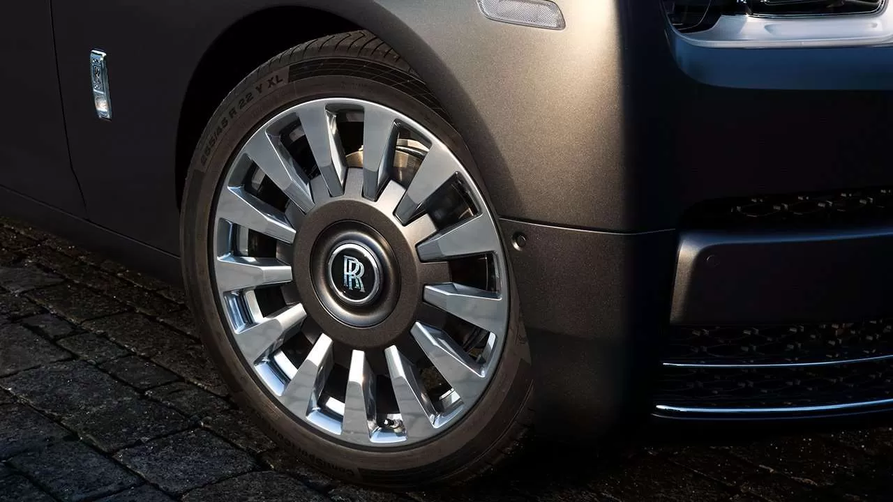 Это сделали не только для удобства, но и для соответствия правилам безопасности. Сам массивный 5.8-метровый кузов (версия с длинной базой имеет длину 6.1 метра) установили на 21-дюймовых «катках», которые обуты в покрышки Michelin. Диски получили фирменную эмблему Rolls-Royce – сдвоенное изображение латинских букв RR.