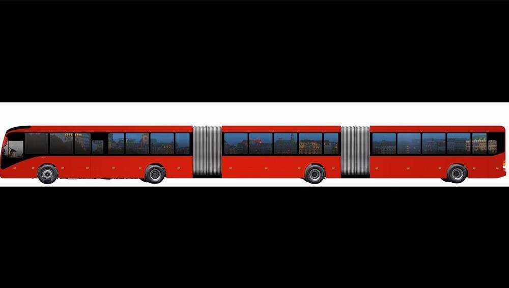 Автобус оборудован «гармошкой» и изгибается при прохождении поворотов.