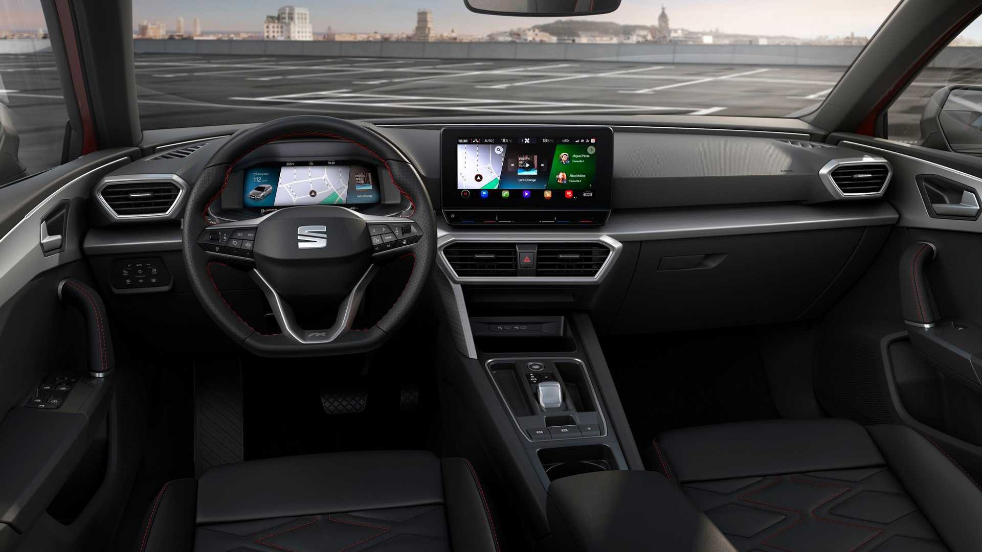 Мультимедиа традиционно поддерживает Apple CarPlay и Android Auto, а также электронную сим-карту для интернета. Опционально Леону предлагается беспроводная зарядка смартфона на центральной консоли, где дополнительно установлено два USB-C порта.