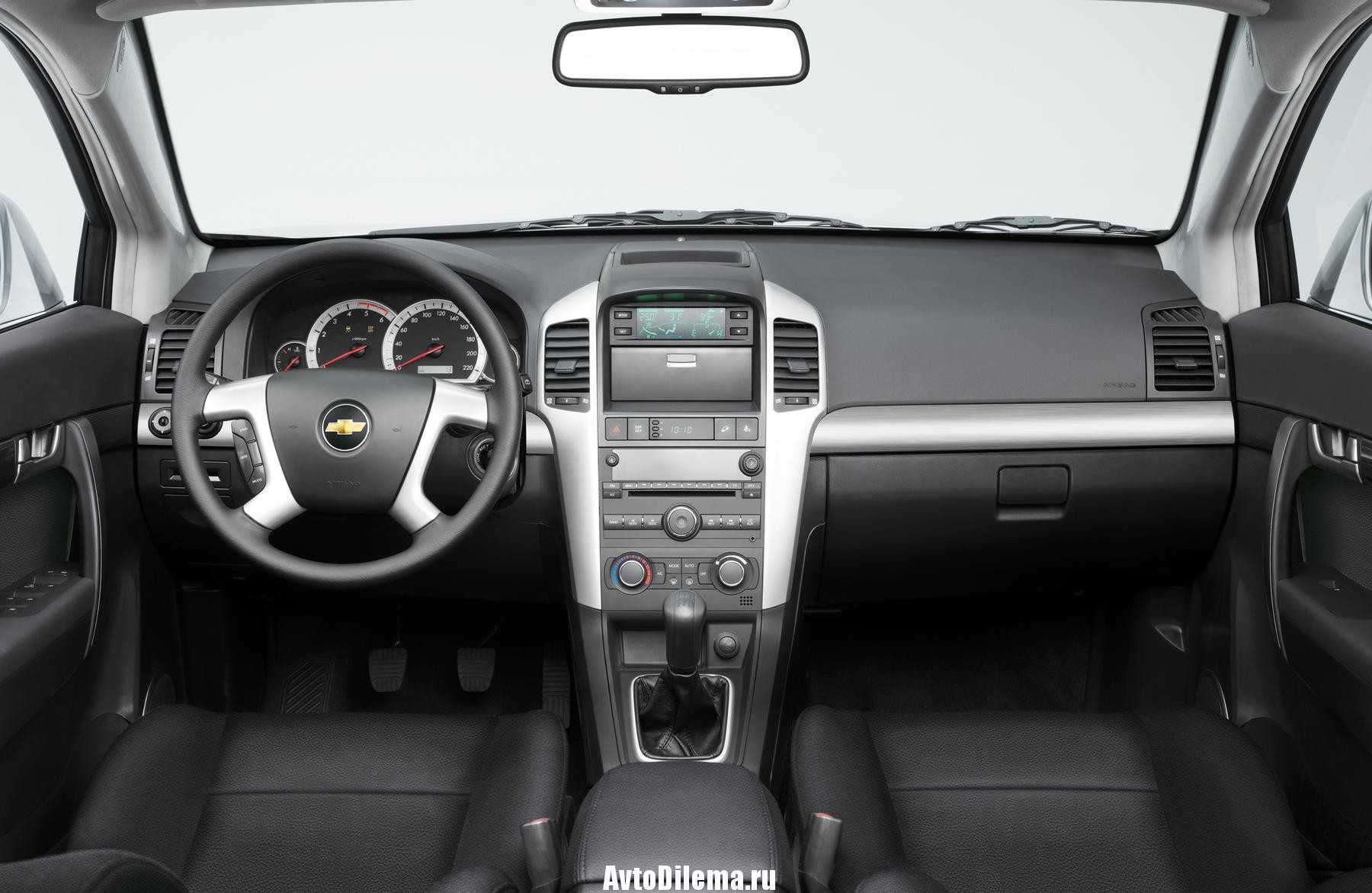 В салоне Шевроле Каптива Вы не найдете дизайнерский изысков и дорогих материалов, в первую очередь автомобиль создавался «бюджетным». В интерьере есть мягкий пластик, продуманная эргономика и в «топ-модификациях» можно выбрать комбинированный или кожаный салон и даже 7-ми местную версию для семьянинов. Довольно богатая базовая комплектация включает в себя полный привод, 6 подушек безопасности, электропакет, ГУР, кондиционер, система стабилизации ESP, магнитола CD-MP3 с управлением на руле и 17 дюймовые легкосплавные диски, опция помощи спуска с горы.