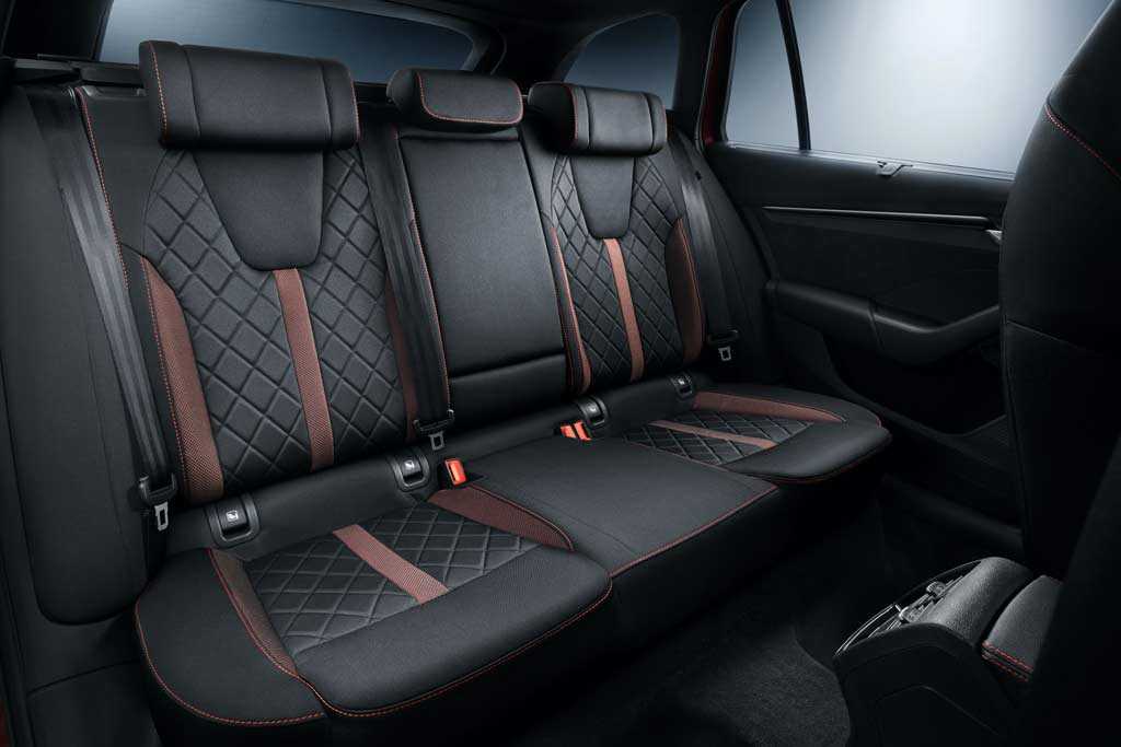 Стандартные спортивные сиденья очень удобны — хотя чехи могли приложить больше усилий к большей боковой поддержке. При прохождении быстрых поворотов вас удерживает в сидении только ремень безопасности. Но и з плюсов — они имеют спортивную контрастную строчку. Вы также получаете окружающее освещение с вашим выбором из 10 цветов, хотя по умолчанию используется подпись Skoda (неинтересная) и медицинский зеленый.