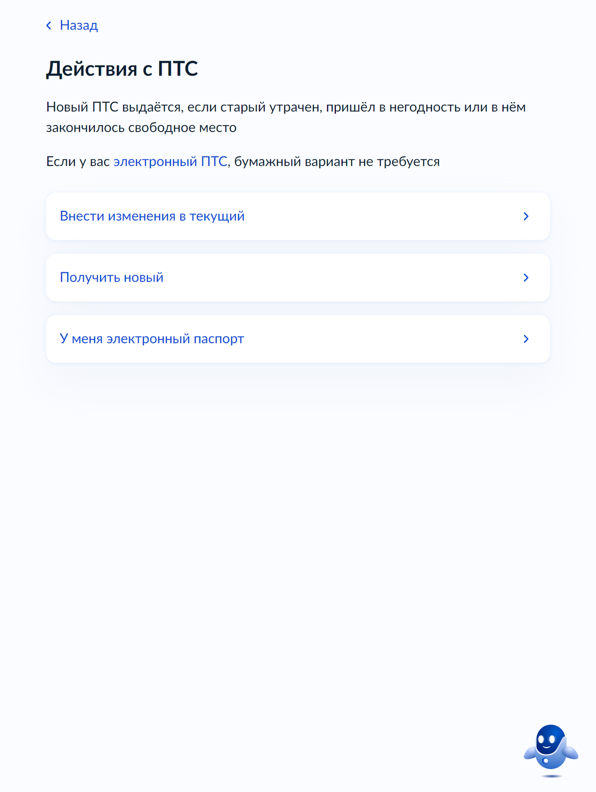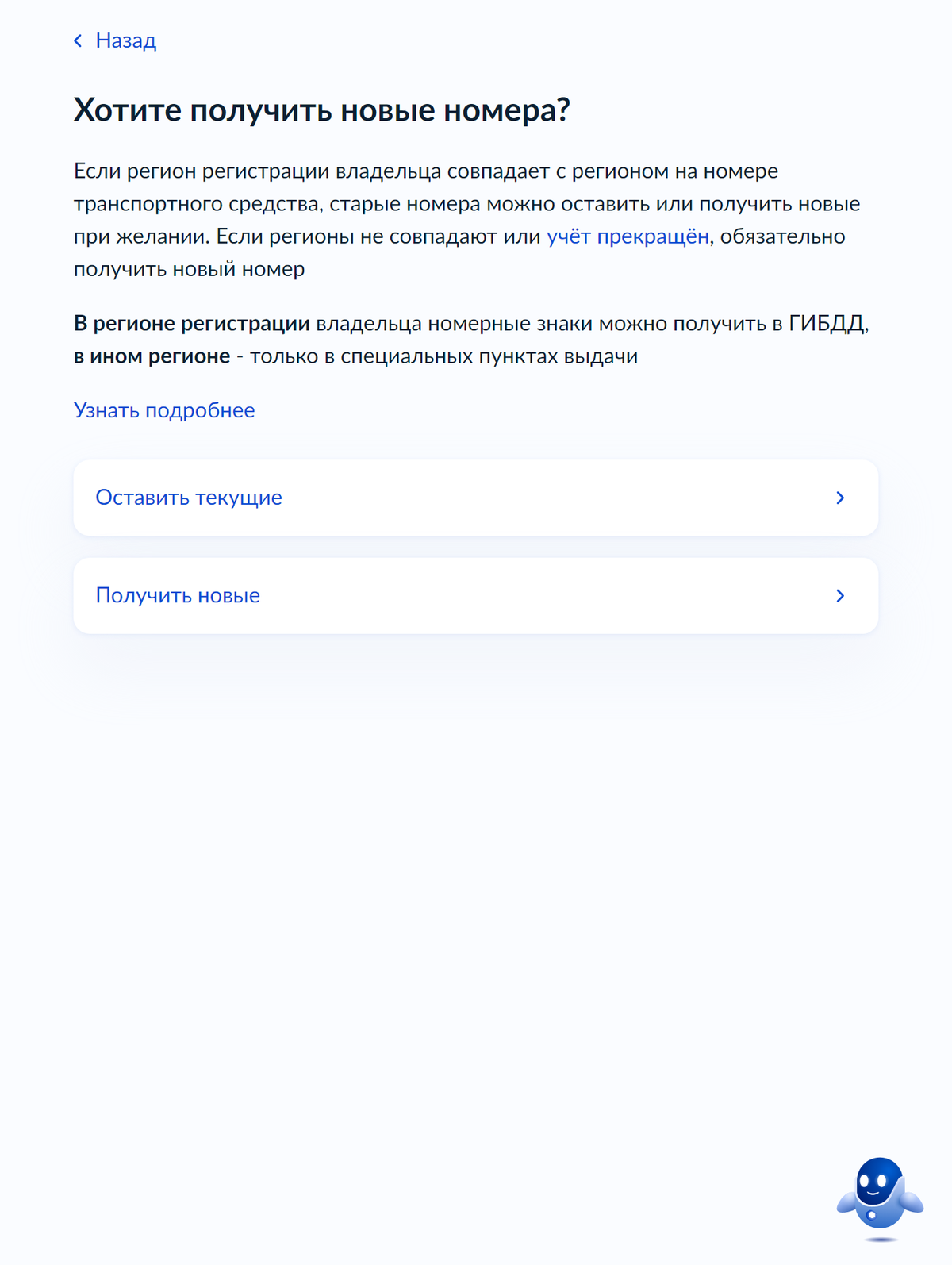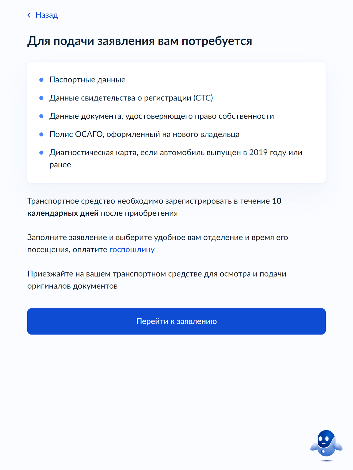 Собственнику нового автомобиля нужно подписать договор с автосалоном на совершение регистрационных действий в ГИБДД и предоставить документы: свой паспорт, полис ОСАГО, СТС и номеров. Также нужно будет подтвердить уплату госпошлины. Если платили в банке — надо предоставить чек об уплате госпошлины за выдачу ПТС. Если платили на госуслугах — попросят назвать УИН платежа. Его можно посмотреть в личном кабинете в разделе «Платежи» → «История».