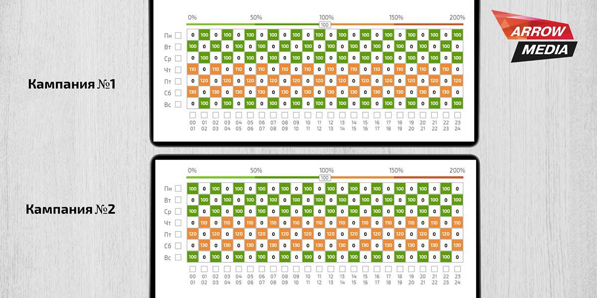 В настройках времени показа настраивается время работы кампаний: час показывается одна, час — другая.
