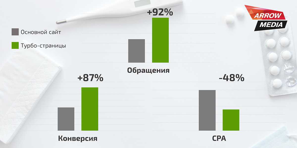 В результате конверсия в обращение с турбо-страниц оказалась почти в два раза выше, а СРА — в два раза ниже. При этом улучшения произошли именно из-за роста конверсии на мобильных устройствах.