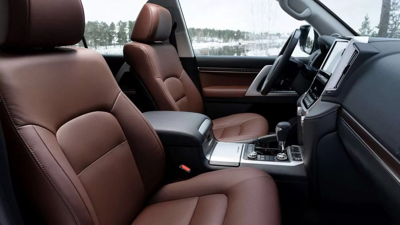 Интерьер особого внедорожника обшит перфорированной кожей с ромбовидной строчкой. Исключительно в новой версии сиденья и дверные панели отделаны перфорированным материалом Semi-Aniline (комбинацией натуральной и синтетической кожи) c ромбовидной прострочкой. Пакет систем активной безопасности Toyota Safety Sense и набор опций «Зимний комфорт» с подогревами входят в стоимость.