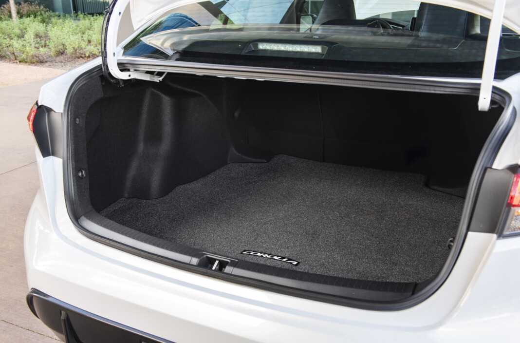 Габариты Toyota Corolla 2023 средние. Длина машины – 4.63 м, ширина – 1.78 м, а высота – 1.435 м. С такими показателями будет несложно поставить седан даже на тесной парковке. Межосевое растояние у автомобиля почти 2.7 метра, поэтому внутри «четырехдверки» очень просторно на всех пяти местах. К слову, багажный отсек у автомобиля внушительный – 470 литров. Дорожный просвет «Короллы» на пятнадцать сантиметров, и поэтому про езду за пределами ровных дорог можно забыть.