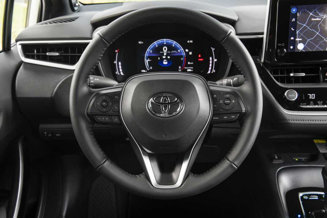 Капот стал алюминиевый и не имеет никакой шумоизоляции, что немного странно, зато имеет палочку-подставку, что немного грустно, потому что за эти деньги хочется иметь пневмоупор. В Украине доступно 2 двигателя: 1,6 бензин и 1,8 гибрид, оба на 132 л.с. Гибрид на Corolla появился впервые, а ранее мы могли видеть его на Prius и C-HR. Установка надежная и экономичная: расход гибрида в городе ок. 4 л в то время, как бензин ок. 8-9. Гарантия на гибридную установку 5 лет, а на сам автомобиль — 3 года. В Европе еще будет доступен двигатель 1,2 (4 цилиндра с турбиной) и 2.0 гибрид для более динамичной езды.