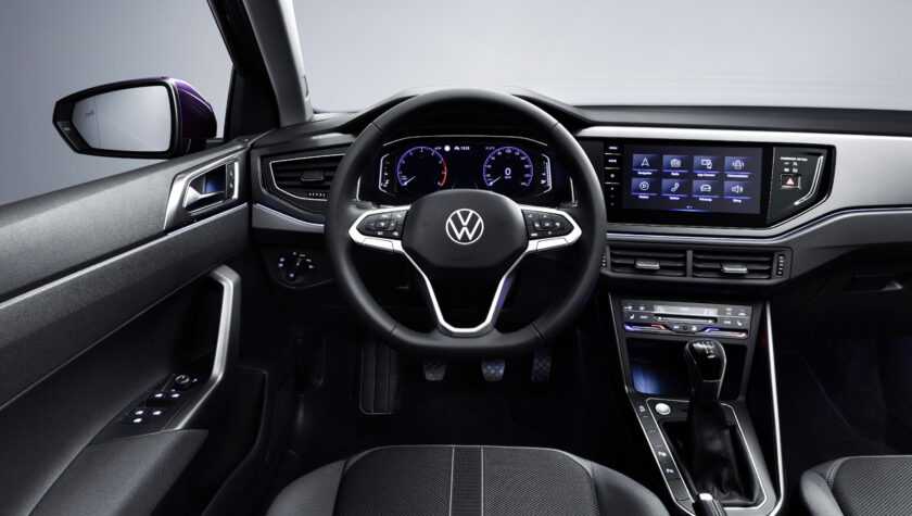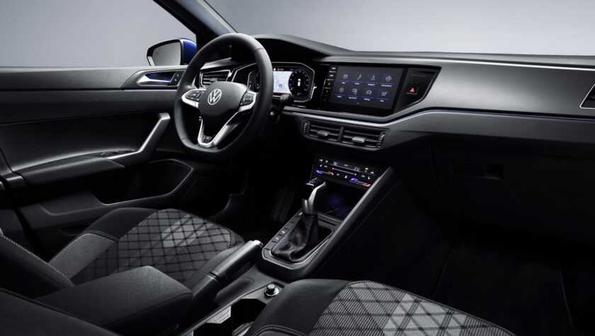 Руль оформлен в виде трехспитцевого колеса, которое, как и рукоятка переключения передач, отделано кожей. Багажник обит износостойким покрытием из ткани. Панель приборов обрамлена хромированной вставкой. Автомобиль в зависимости от выбранных опций может быть оборудован компактной системой хранения в подлокотниках. В рамках пакета R-Line предлагается установка многофункционального кожаного руля.