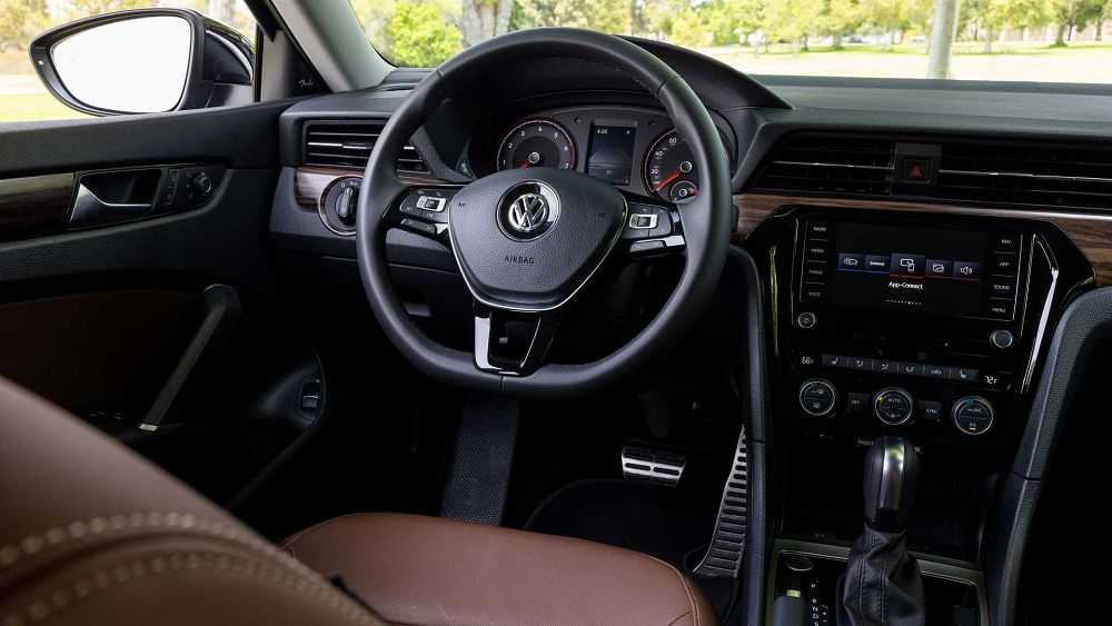 Многофункциональный статус рулевого колеса подтверждает наличие на верхней плоскости блоков сенсорных активаторов бортового оборудования. Фольксваген Пассат образца 2022 года укомплектован продвинутым посадочно-дорожным сервисом и современной автомобильной электроникой.