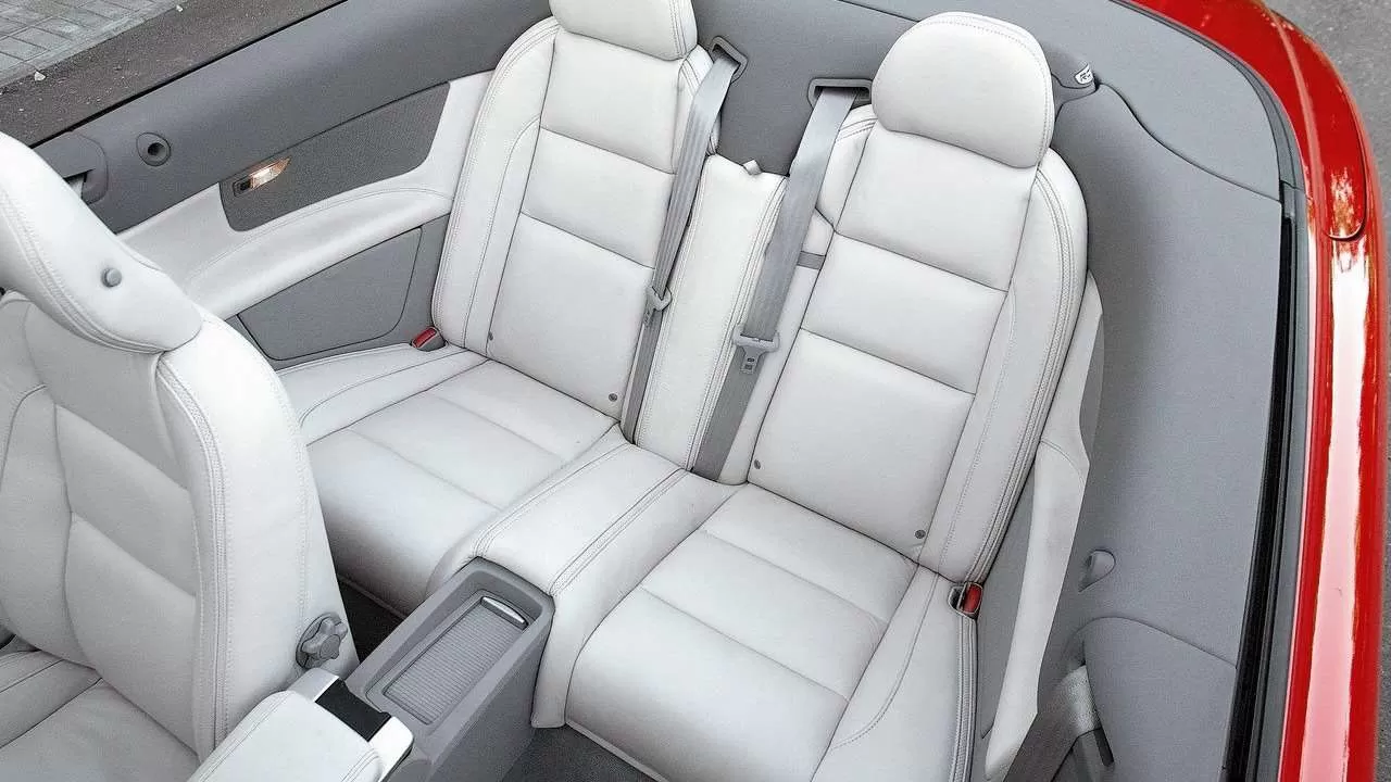 Внутри автомобиль выполнен в классическом стиле компании, такой же находится во многих моделях фирмы. Сиденья у кабриолета обшиты неплохой кожей, правда не в каждой комплектации. Присутствуют электрорегулировки и подогрев. Сзади пространства мало и там всего два посадочных места. Там тоже кожаная обшивка, но вот мало места и это огорчает. Для заднего ряда присутствует бокс с подстаканниками.