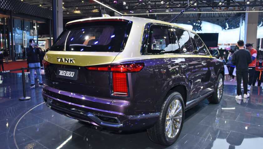 Tank 800 – флагман модельного ряда “Танков”. На выставки был представлен в двухцветном кузове, намекающий на представительские автомобили Range Rover или Rolls-Royce.