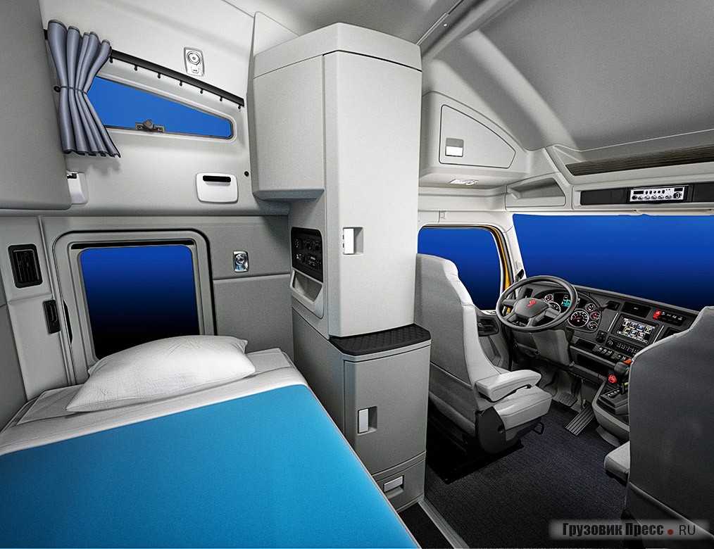 57X будет доступен с двумя вариантами кабины. Короткая не имеет спальника и насчитывает 152 см в высоту, а длинная (на заглавном фото) имеет спальник, зону для отдыха и дополнительный 31 см пространства над головой.
