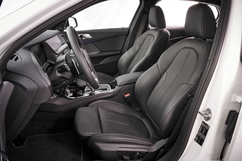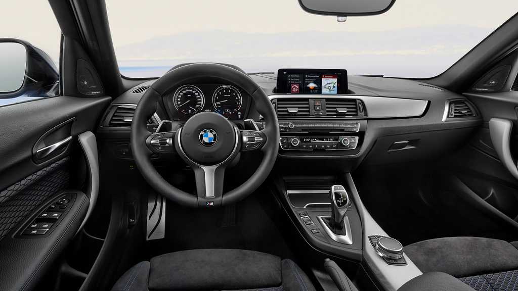 Интерьер нового БМВ 1 серии подвергся основательной ревизии, вылившейся в целый ряд улучшений. В числе доработок пересмотренная комбинация приборов, новое оформление передней панели (иные декоративные накладки и дефлекторы вентиляции), повышение качества отделочных материалов, появление дополнительных вариантов обивки (доступны до семи разновидностей ткани, Алькантара, кожа Дакота, хромированные детали, вставки из алюминия и дерева). Плюс ко всему подстаканники у основания консоли отныне аккуратно прикрыты шторкой.