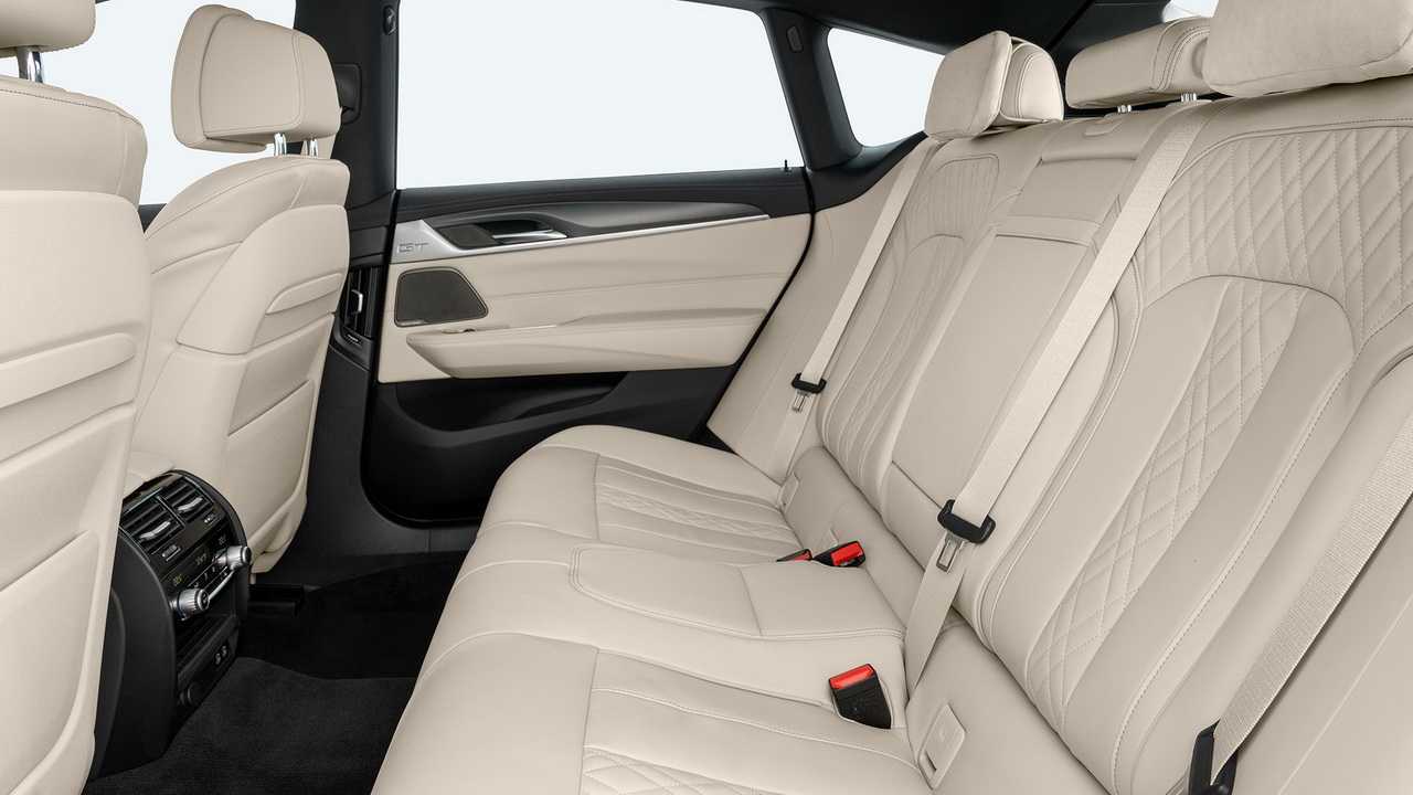 В список опций для нового BMW 6-Series Gran Turismo входят четырехзонный климат-контроль, светодиодная подсветка салона, 1400-ваттная акустика Bowers & Wilkins Diamond Surround, панорамный люк в крыше, моторизованные жалюзи, пакет Ambient Air. Пассажиры задних сидений вправе рассчитывать на обособленную информационно-развлекательную систему с двумя 10.25-дюймовыми сенсорными дисплеями, проигрывателем Blu-ray и парой USB-портов. В набор электронных ассистентов добавились система поддержания рядности движения и функция автоматического торможения на городских дорогах.