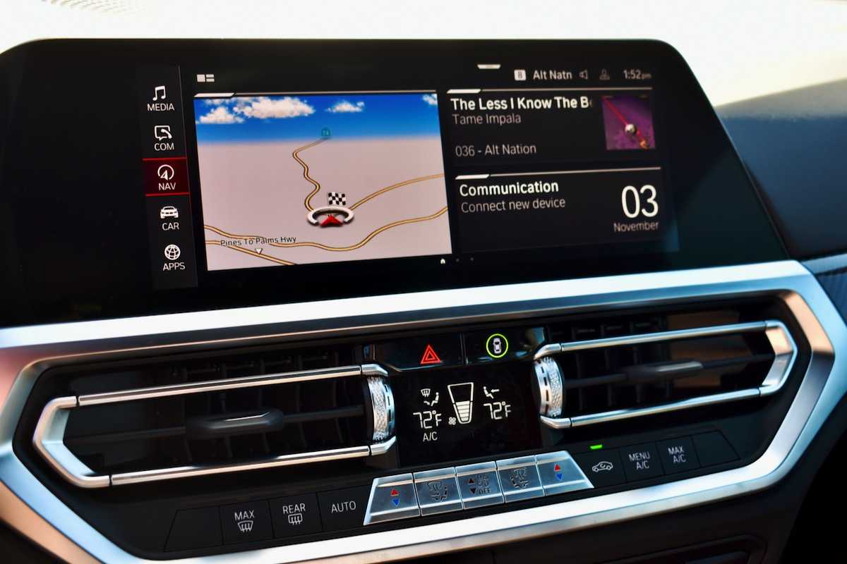 Это может быть сосредоточено на производительности, но M4 получает сложную информационно-развлекательную систему, как и другие модели BMW. В стандартную комплектацию входят 12,3-дюймовая цифровая комбинация приборов и 10,25-дюймовый сенсорный экран, а также беспроводной Apple CarPlay / Android Auto, головной дисплей и операционная система BMW iDrive 7.0.