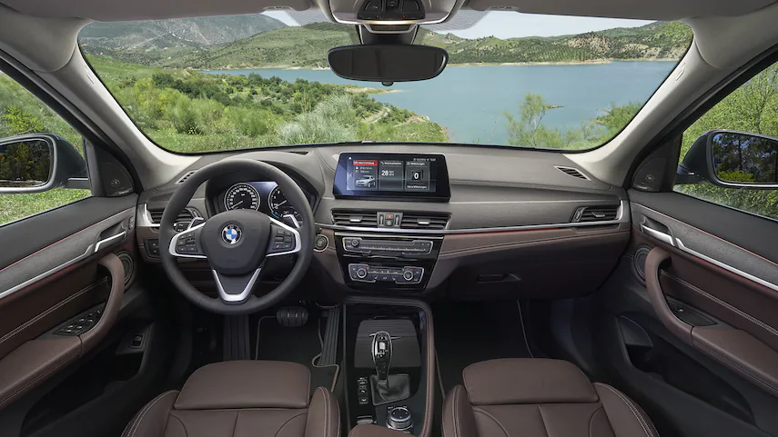 Стандартное оснащение предполагает наличие мультимедийного экрана 6,5 дюйма, а в качестве дополнительной опции можно пробрести 8,8 дюймовый дисплей. Салон BMW X2 F39 довольно вместительный, предназначен для пятерых людей. В зависимости от комплектации BMW X2 F39 предполагается наличие кондиционера или автоматического климат-контроля. Руль авто удобный, многофункциональный.