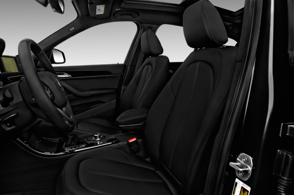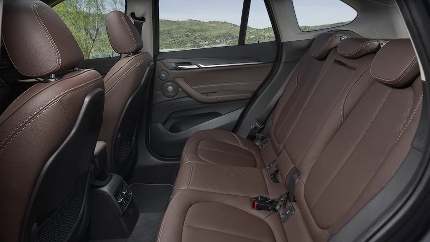 Для части модификаций доступна приборная панель с контрастной прострочкой. Для отделки кресел и дверных карт на BMW X1 используется синтетическая кожа Sensatec. На модернизированном BMW X1 появилась функция проецирования на землю названия модели (с помощью светодиодов в корпусе зеркала) и подсветки дверных ручек. Передние сиденья регулируются вручную, на дорогих версиях ставится электрический привод с памятью 3 положений.