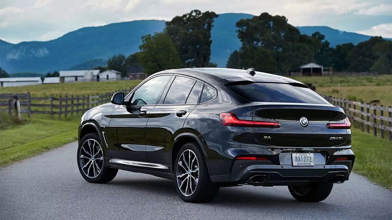 Сзади появились новые узкие светодиодные фары в стиле BMW 8-Series. Массивная крышка багажника формой образует анти-крыло, также присутствующее на крыше. Бампер кормы получил похожие линии с выдавливанием. Внизу черная вставка с интегрированными светоотражателями и двумя массивными патрубками выхлопной системы, но в базовой комплектации BMW X4 они круглые.