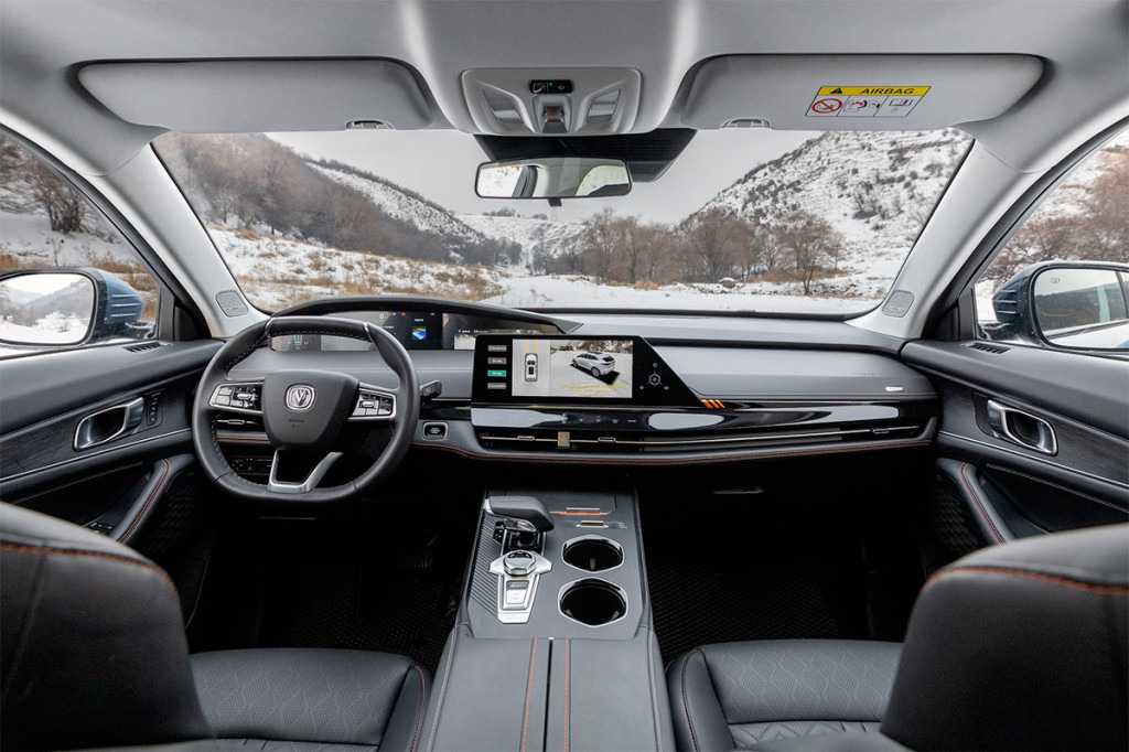 Тоннель располагает джойстиком переключения режимов трансмиссии, мультимедийной шайбой, органайзерами и подлокотником со встроенным объёмом холодильной камеры. В комплектации салона продвинутая автомобильная электроника, в том числе: