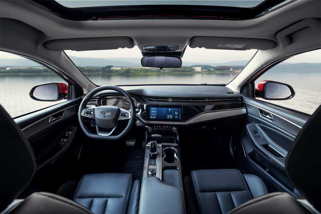 Внутри нового Чери Арризо 5 Плюс 2021 модельного года можно обнаружить довольно качественные пластик, ткань и экокожу, увеличенный тачскрин развлекательной системы, довольно приятные посадочные места и неплохую приборную панель.