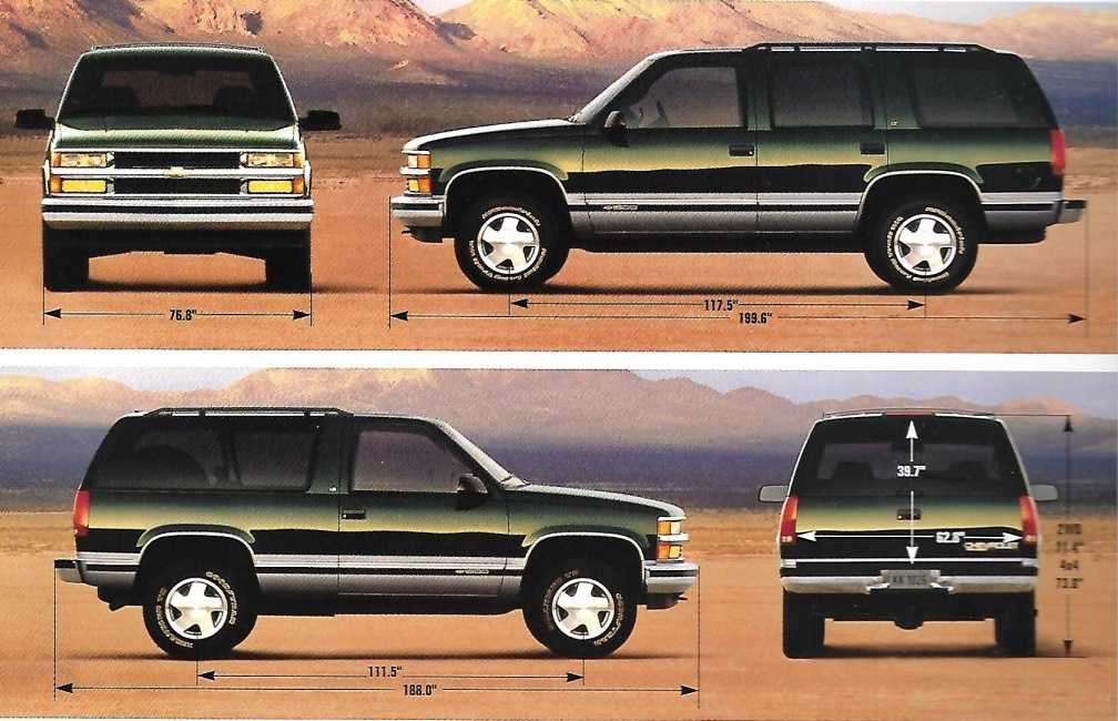 У Шевроле Тахо габариты также обновились. Теперь длина нового автомобиля составляет 5 351 мм, что на 169 мм больше, чем в прошлой версии. Примечательно, что колесная база также была увеличена, ее растянули аж до 3 071 мм, что на 125 мм больше, чем в прошлой версии. А вот ширина и высота Тахо составили 2 058 и 1 927 мм, что практически совпадает со прошлым поколением ТС по значениям.