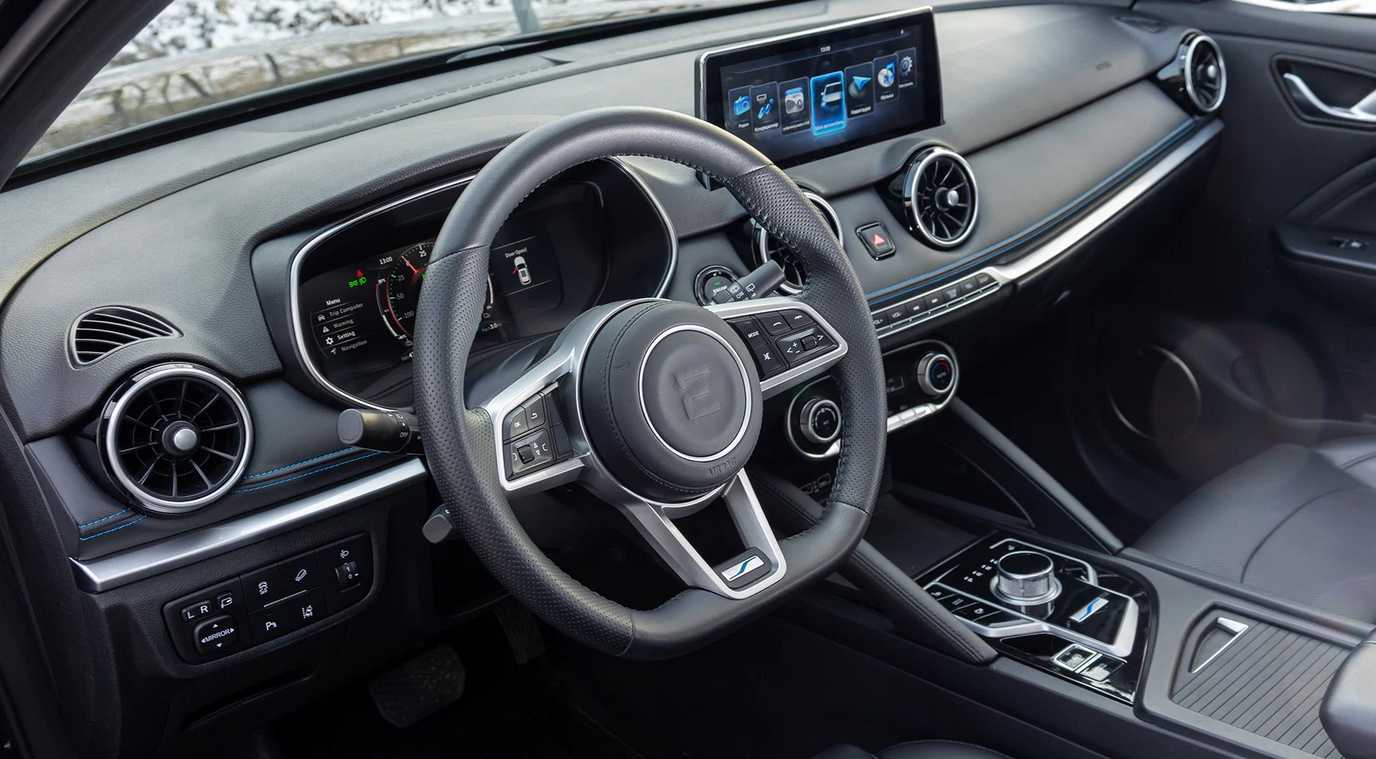 Выбрать комплектацию при покупке пока невозможно: в данной модели вы получите 6 подушек безопасности, медиасистему, климат-контроль, обогрев кресел (но не руля), круговые камеры, парктроники, видеорегистратор, датчики дождя и света, а также круиз-контроль с ограничителем скорости. Имеется электропривод сидений, но вот руль отрегулировать можно только по высоте. Отдельно отметим панорамную крышу и мягкие сидения – это, конечно, козырь.